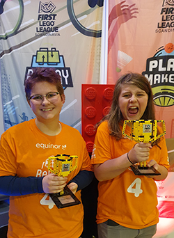 – Jag är jätte, jätteglad! Jag och många av mina lagkamrater går i åttan, och det är första året vi är med i FIRST LEGO League. Vi funderar redan på om vi ska vara med nästa år igen, men först det ska bli superskoj att åka till Norge och tävla med alla roliga människor i mitt lag, säger Siri Norberg i vinnarlaget Team._.hug från Västra skolan.