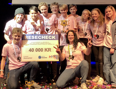 Att laget från Västra skolan presterade det tredje bästa resultatet i Skandinavien – av 700 tävlande lag i Norge och Sverige – imponerar också. Förutom stiliga pokaler – i Lego, så klart – fick de två vinnarlagen ta emot varsin prischeck på 50 000 kr, som Skolverket bidrar med till reskassan.