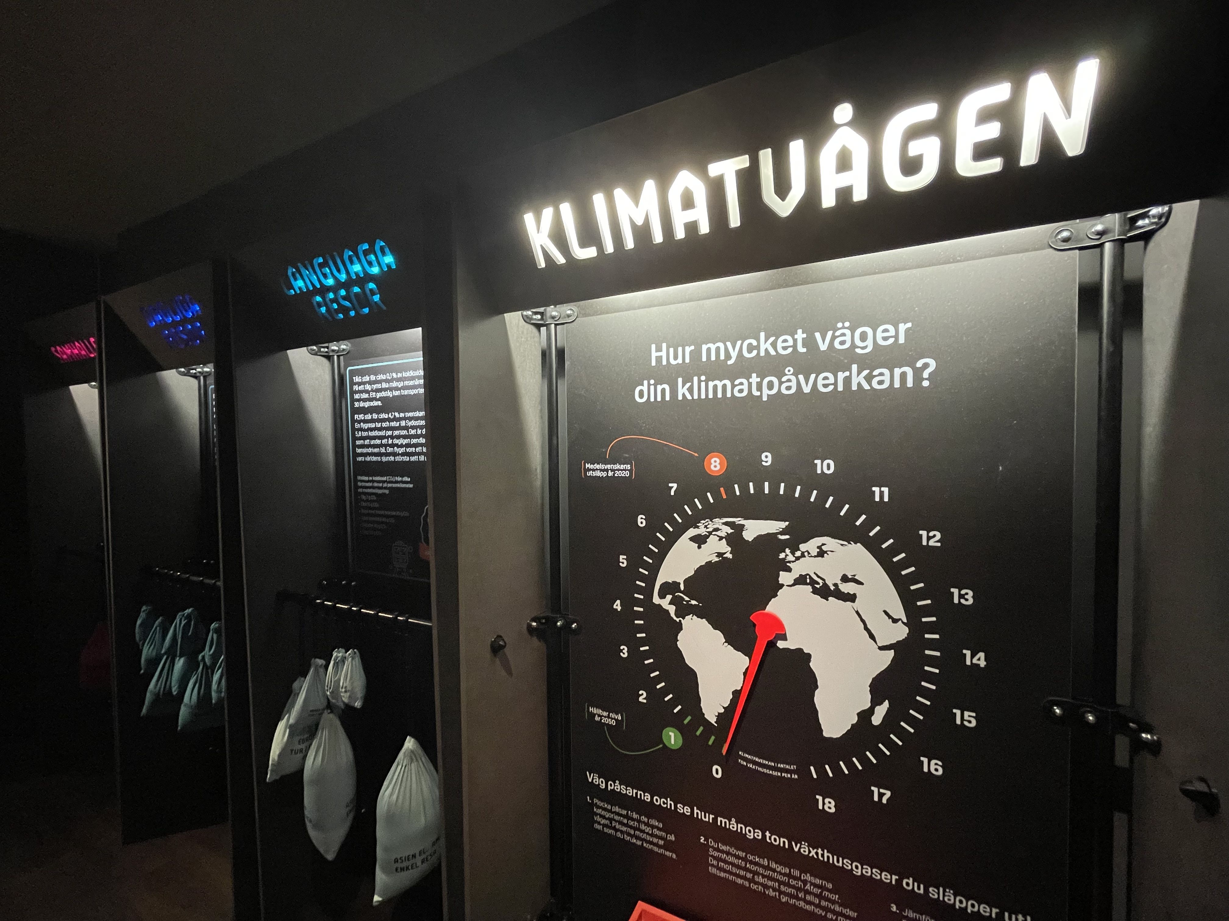 Prova vår interaktiva klättervägg, bygg en bil till vår bilbana, få vår baklängespratare att prata framlänges, lär dig binära tal, prova vårat rullstolsspel, lista ut alla lukterna i doftorgeln, kolla ner i den oändligt djupa evighetsbänken eller varför inte bara köpa en glass i vårat café?